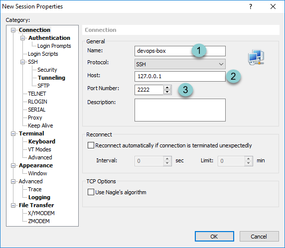 - On connection, give this session a name like "devops-box".